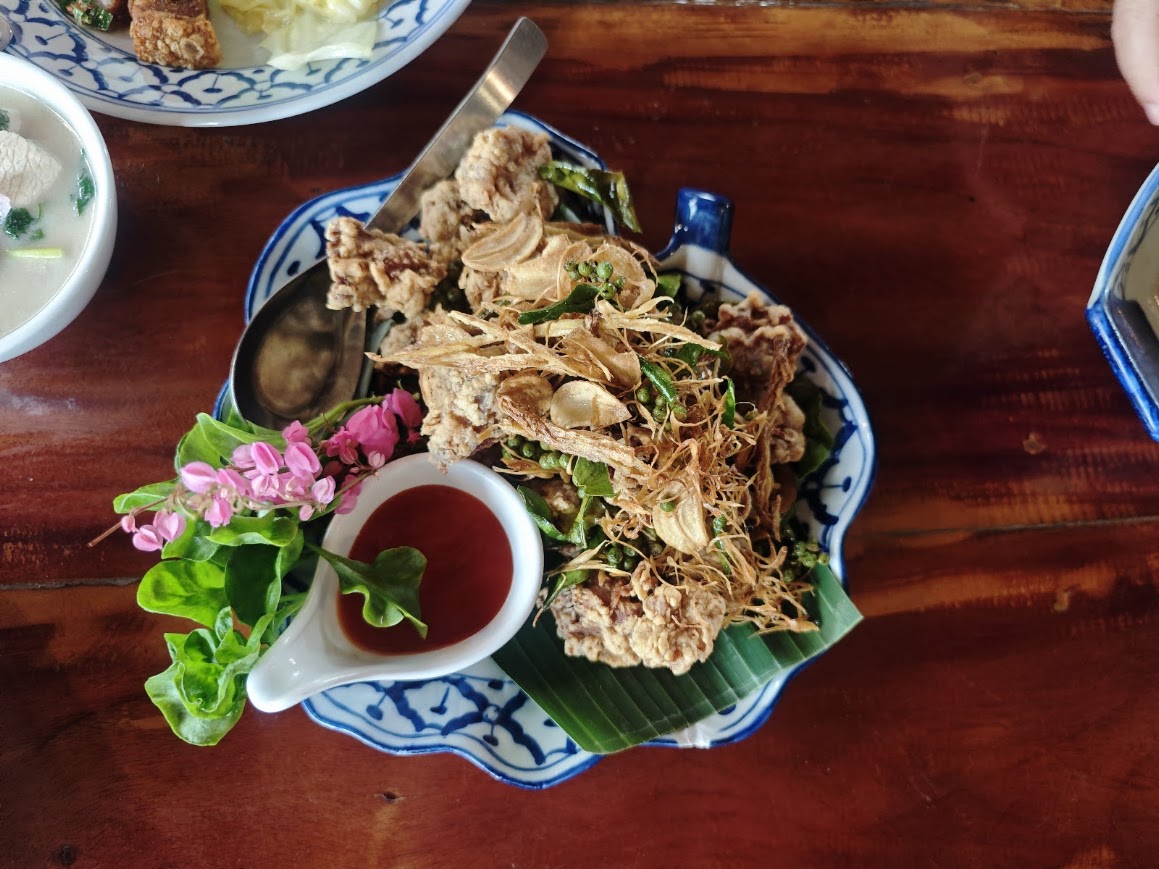 За тайландците храната е не само съществен аспект от живота, но и самото хранене е „социална религия“, споделено преживяване – през повечето време се хранят навън. Когато семейство или група приятели вечерят навън, те обикновено поръчват няколко различни ястия за споделяне. Те обикновено могат да включват риба, къри или супа, ястие с месо и, разбира се, зеленчуци и ориз. Имам чувството, че няма определен ред в ястията. Можете да започнете с нещо сладко и да завършите със супа, тъй като няма първо или второ ястие.